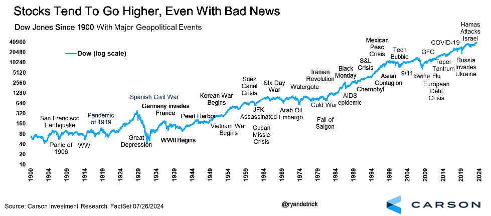 Geopolical worries are growing, along with some of the other worries we’ve already discussed. It is important to remember that most years will have scary headlines and potentially some terrible events. But over time stocks go higher and we don’t think this time will be any different.