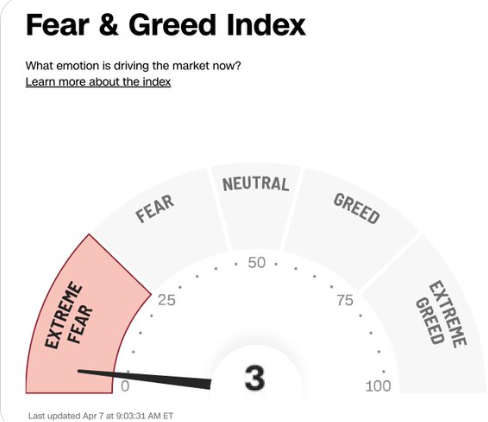 Adding to the pure washout levels of sentiment, the CNN Fear & Greed Index hit a level of three yesterday morning—about as low as it can go—suggesting many of the sellers have likely already sold.