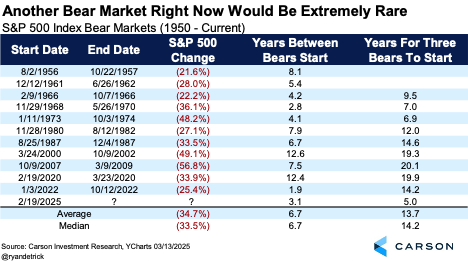 If we did enter into another bear market, it would be the third bear market in the past five years. That would be the fastest we’ve ever seen three bear markets start, topping the just under seven years we saw for three bear markets starting from February 1966 to January 1973.