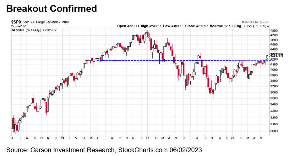 We’ve been expecting stocks to continue their trend higher, but the S&P 500’s move above 4,200 was important. The S&P has closed above this level for two consecutive weeks now, suggesting the strength it has shown in 2023 is legitimate and more gains could be ahead.