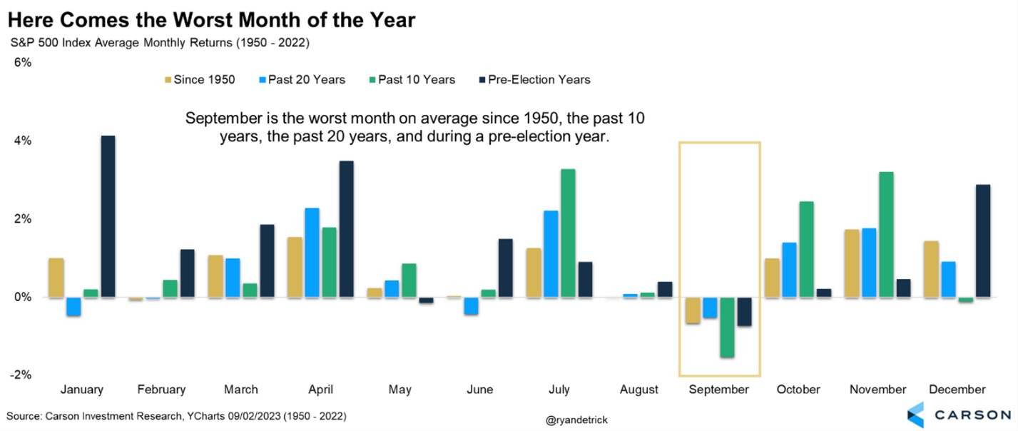 Does September always have to be bad? That’s a common question, especially considering stocks lost 9.3% in 2022 during a horrible bear market and 4.8% in 2021 during a great bull market. To most investors it might feel like September is doomed, but it is not.