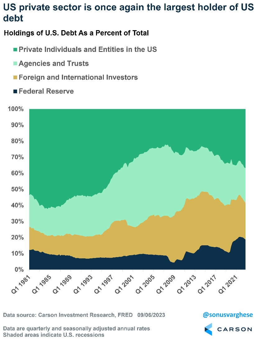- The U.S. private sector is the largest holder of U.S. government debt, and thus the biggest beneficiary of higher rates.