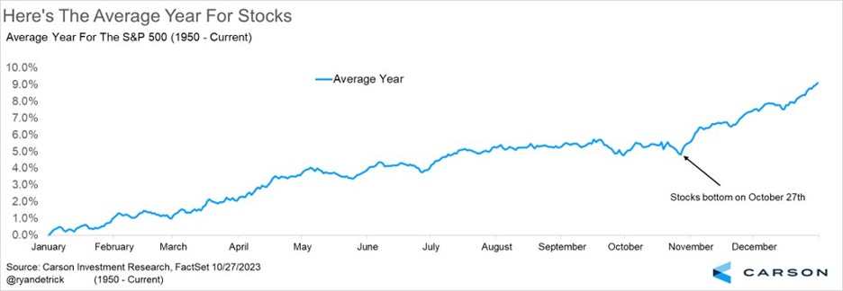Equity markets appear to be struggling to come to terms with the idea of elevated interest rates. But ultimately, higher rates are mostly reflecting a stronger economy, and that’s good news for profits. Carson’s Ryan Detrick recently wrote about how forward estimates of profits and profit margins are rising. While we’re currently experiencing a “good news is bad news” dynamic, that’s likely to shift eventually.