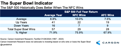 First things first, don’t ever invest based on who wins the Super Bowl. Or what color #87 Taylor Swift will wear at the big game, or the coin toss, or how bad the refs will be. With that out of the way, it is Super Bowl season, and that means it is time to talk about the always popular Super Bowl Indicator!