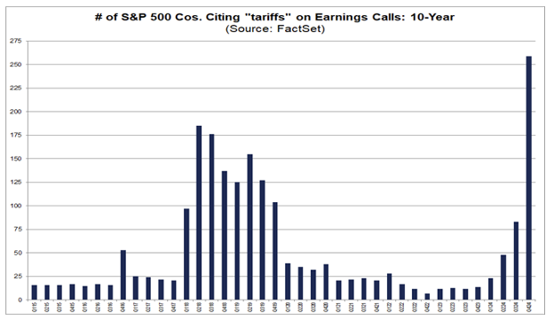 We know already that markets are sensitive to tariff news, as it was the main driver behind the February 19 – March 13 S&P 500 Index correction. We also know that the policy uncertainty created by tariffs is having an impact on Federal Reserve policy and businesses.