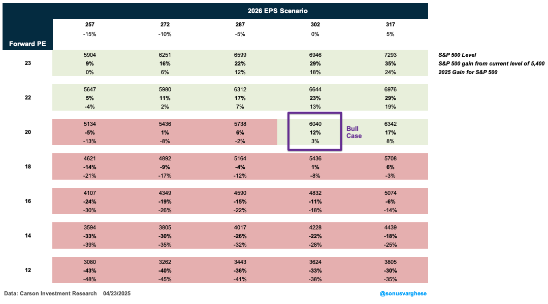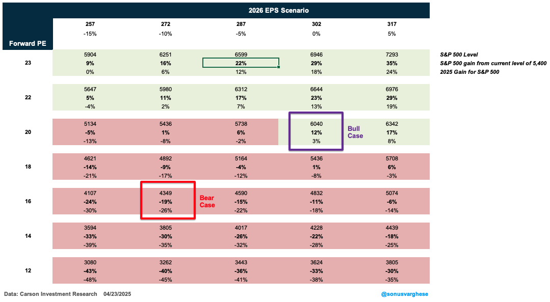 For the market, the best case looks like 2026 EPS estimates remain where they are currently, around $302/share. But the added risk premium for US equities could result in a lower multiple, of say 20x optimistically.