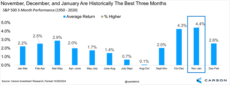 Another reason to remain bullish is November, December, and January are historically the best consecutive three months of the year, up 4.4% on average.