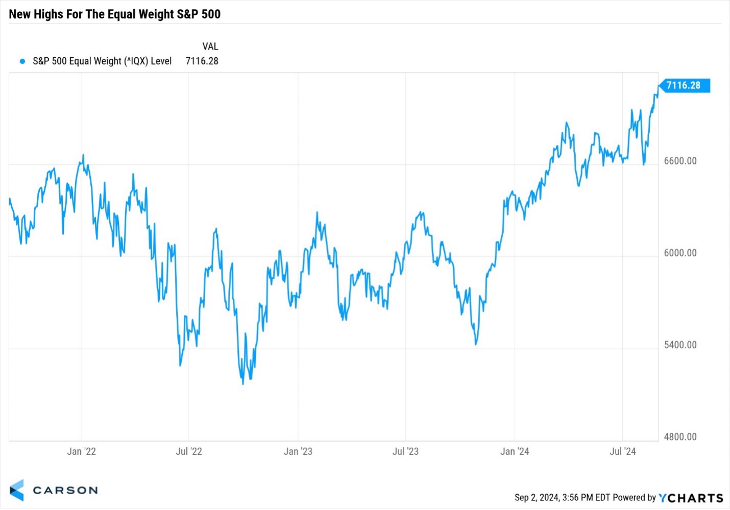 We’ve long said that the next stage to this bull market will be a broadening out of the rally, and not just the high-flying tech and communication services names doing well. Well, that is happening right before our eyes. A great way to see this is that the S&P 500 equal weight index closed at a new all-time high on Friday. This index weights all 500 names the same, so a few large names don’t dominate the overall action. It is another sign that many stocks are participating in this rally, which is a sign of a healthy market overall.