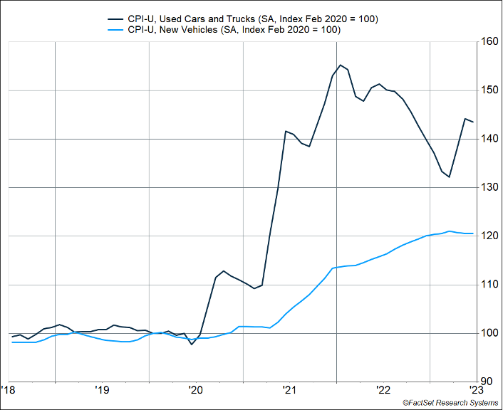 The first is used and new vehicle inflation, which is likely to fall even more than it already has. Wholesale auction prices suggest that used car prices are falling quite significantly, and improved vehicle production should continue to ease new vehicle prices. There’s a good chance that prices fall, i.e., outright deflation occurs, for a category that makes up 10% of core PCE inflation.