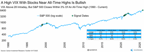 So going into the tail end of this year and into 2026, the set up looks good for stocks, including strong momentum over the last six months, positive seasonality, a dovish Fed, less uncertainty around tariffs, and tax cuts at the start of 2026.