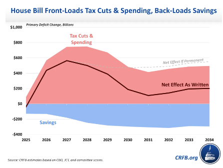 When I ask how big the tax bill will be, I’m really talking about deficits. All else equal, deficit-financed spending will boost profits (as they did in 2016-2019, 2020-2021, and even 2023-2024). If Congress does nothing, tax rates for households will revert back to pre-2017 levels. Simply put, there’s no way Republicans in Congress will allow that to happen, especially going into a midterm year. But renewing all the tax cuts could cost about $4 trillion over the next decade. In other words, that’s the cost of maintaining the status quo. To provide an additional boost to the economy, the bill likely has to be larger, perhaps closer to $5 trillion, with most benefits front-loaded. Also keep in mind that tariffs are effectively a tax on businesses and consumers that pulls money away from the private sector into the federal government’s coffers — so the tax bill will also have to neutralize that.