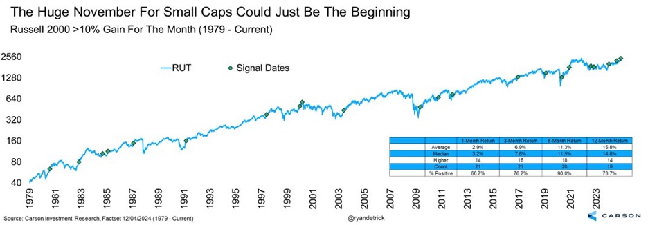We’ve noted week after week this year why we thought stocks would likely rally and fortunately that’s what we’ve seen happen. The S&P 500 is up more than 27% in 2024, which would go down as the best election year return ever, and it has made 56 new all-time highs, among the most ever as well.