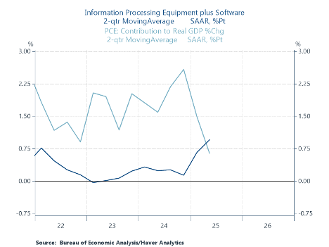 The biggest longer-term risk is that a surge in investment spending, especially one that makes an outsized contribution to GDP for a few years, tends to lead to a fairly large hangover once it ends. We’ve seen this a few times over the last 30 years—the internet boom in the 1990s, housing and financial innovation in the 2000s, and energy (including shale) in the early 2010s.