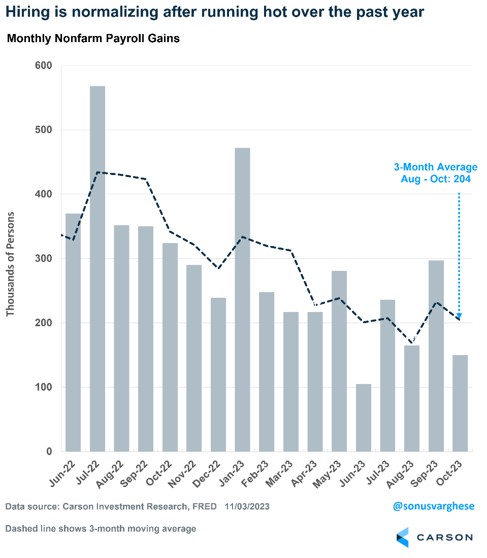 The October payroll report indicates the economy is slowing from its red-hot pace. However, that is normalization rather than recessionary. It is also just what the doctor ordered for markets, and especially for the Federal Reserve.