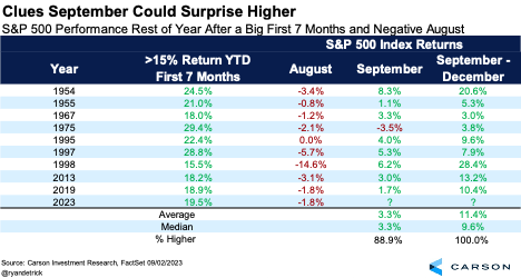 - September is typically the worst-performing month, but there are some indications this year will buck that trend.