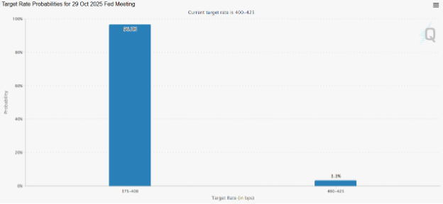 This is why markets are currently pricing a cut at the Fed’s October meeting with a 97% probability (based on fed funds futures).