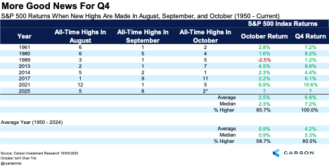 Including last week, we now have 31 new all-time highs in 2025. In fact, 2025 already ranks 20th for the number of new all-time highs, not bad considering we still have nearly three more months to go.