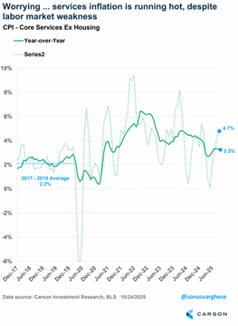 As I mentioned above, even Powell seems to think that rates should be at neutral, i.e. 3%, when risks to both sides of their mandate are equal. Now if the labor market looks stronger, rate cuts could get pushed out but that’s not necessarily a bad thing since it would mean the economy is doing well. But the big picture is that we’re likely to get more rate cuts—if not in December, then in 2026. and if not by a Powell-led Fed, then under a new chair. Ultimately, the rate cuts will have a downstream impact on more rate-sensitive areas of the economy (like housing and manufacturing). Combine that with the massive amount of AI-related investment and we could be looking at an inflationary boom next year.